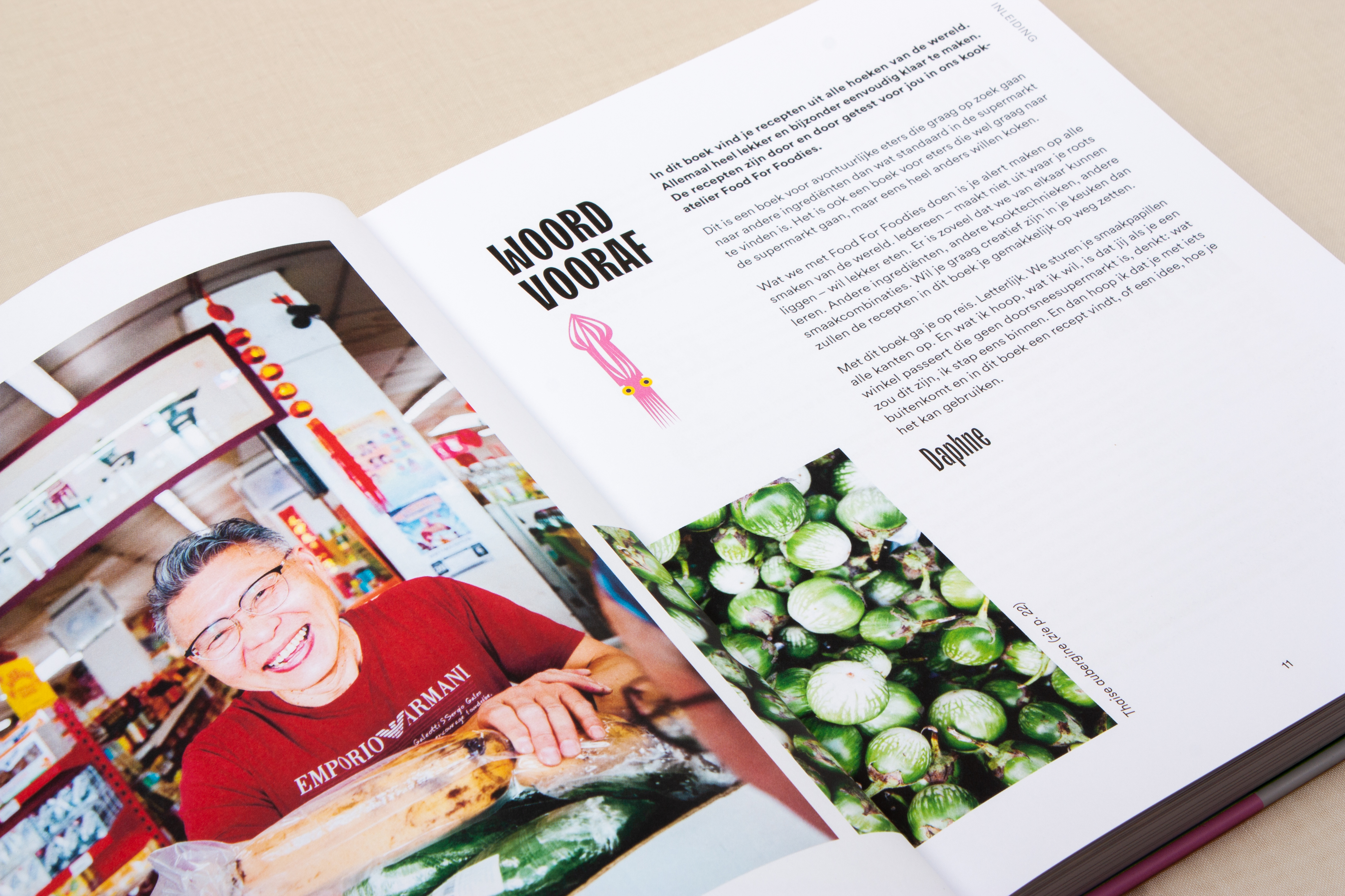 In het tweede boek van Daphne Aalders, bekend van het kookaterlier Food for Foodies, vind je gerechten uit alle hoeken van de wereld, met heerlijk exotisch klinkende namen. Sluit je ogen en je waant je op een ander continent. Al het eten van de wereld is gevuld met enorm lekkere en verrassende recepten. Van paradijselijke salades en kruidige hoofdgerechten tot zalige zoetigheden. Dit boek is er voor iedereen die fan is van de wereldkeuken, maar nog net dat tikkeltje meer voor de avontuurlijke eters onder ons. Stap eens een Chinese of Georgische buurtwinkel binnen en laat je verrassen door een waaier aan exotische producten. Op zoek naar creatieve smaakcombinaties of nieuwe, buitenlandse kooktechnieken? Dan is dit boek wat je zoekt. Sla het open en proef alle smaken van de wereld. Er valt immers zoveel te ontdekken! Daphne Aalders is culinair journaliste en eigenares van het kookatelier Food for Foodies. Ze reisde al naar alle hoeken van de wereld en dat vertaalt zich in- haar grote liefde voor wereldkeuken. Fotografe Aurélie Geurts wist de gerechten prachtig in beeld te brengen.