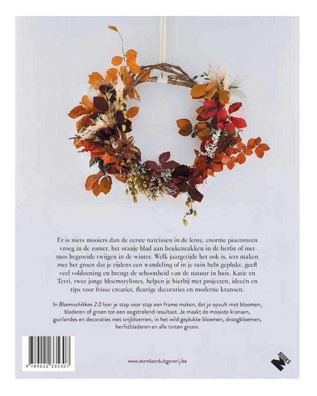Er is niets mooiers dan de eerste narcissen in de lente, enorme pioenrozen vroeg in de zomer, het oranje blad aan beukentakken in de herfst of met mos begroeide twijgen in de winter. Welk jaargetijde het ook is, iets maken met het groen dat je tijdens een wandeling of in je tuin hebt geplukt, geeft veel voldoening en brengt de schoonheid van de natuur in huis. Katie en Terri, twee jonge bloemstylistes, helpen je hierbij met projecten, ideeën en tips voor frisse creaties, fleurige decoraties en moderne kransen. In Bloemschikken 2.0 leer je stap voor stap een frame maken, dat je opvult met bloemen, bladeren of groen tot een oogstrelend resultaat. Je maakt de mooiste kransen, guirlandes en decoraties met snijbloemen, in het wild geplukte bloemen, droogbloemen, herfstbladeren en alle tinten groen.