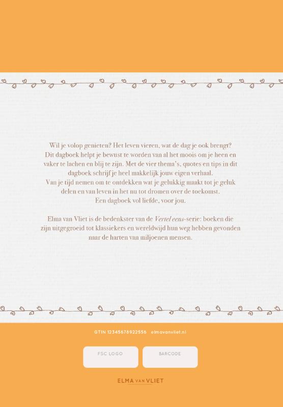 Wil je volop genieten? Het leven vieren, wat de dag je ook brengt? Dit dagboek helpt je bewust te worden van al het moois om je heen en vaker te lachen en blij te zijn. Met de vier thema’s, quotes en tips in dit dagboek schrijf je heel makkelijk jouw eigen verhaal. Van je tijd nemen om te ontdekken wat je gelukkig maakt tot je geluk delen en van leven in het nu tot dromen over de toekomst. Een dagboek vol liefde, voor jou.