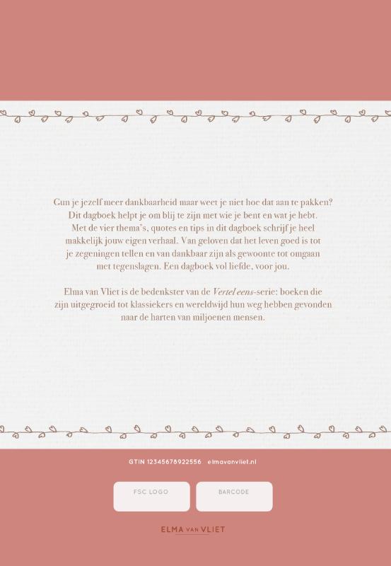 Gun je jezelf meer dankbaarheid maar weet je niet hoe dat aan te pakken? Dit dagboek helpt je om blij te zijn met wie je bent en wat je hebt. Met de vier thema’s, quotes en tips in dit dagboek schrijf je heel makkelijk jouw eigen verhaal. Van geloven dat het leven goed is tot je zegeningen tellen en van dankbaar zijn als gewoonte tot omgaan met tegenslagen. Een dagboek vol liefde, voor jou.