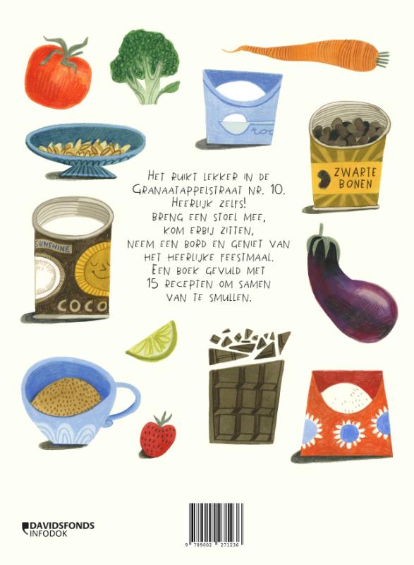 Het ruikt lekker in de Granaatappelstraat nr. 10. Heerlijk zelfs! Breng een stoel mee, kom erbij zitten, neem een bord en geniet van het heerlijke feestmaal. Een boek gevuld met 15 recepten om samen van te smullen. Een huis vol lekkers is een origineel receptenboek voor kinderen. Ze maken kennis met gerechten van over de hele wereld.