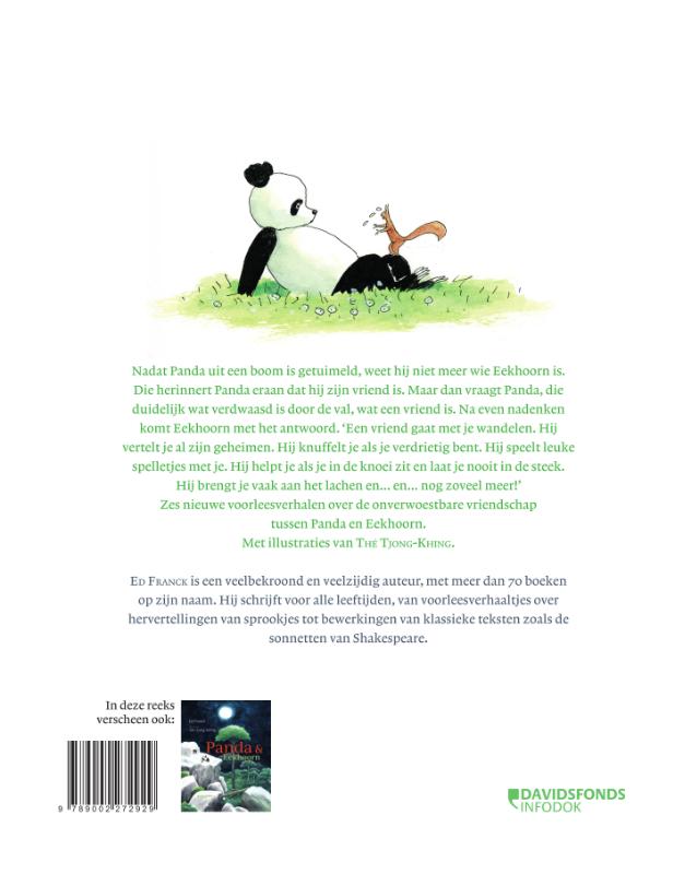 Nadat Panda uit een boom is getuimeld, weet hij niet meer wie Eekhoorn is. Die herinnert Panda eraan dat hij zijn vriend is. Maar dan vraagt Panda, die duidelijk wat verdwaasd is door de val, wat een vriend is. Na even nadenken komt Eekhoorn met het antwoord. ‘Een vriend gaat met je wandelen. Hij vertelt je al zijn geheimen. Hij knuffelt je als je verdrietig bent. Hij speelt leuke spelletjes met je. Hij helpt je als je in de knoei zit en laat je nooit in de steek. Hij brengt je vaak aan het lachen en... en... nog zoveel meer!’ Zes nieuwe voorleesverhalen over de onverwoestbare vriendschap tussen Panda en Eekhoorn. Met illustraties van Thé Tjong-Khing.
