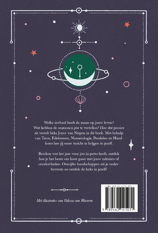 Welke invloed heeft de maan op jouw leven? Wat hebben de seizoenen jou te vertellen? Hoe dat precies zit vertelt heks Joyce van Nispen in dit boek. Met behulp van Tarot, Edelstenen, Numerologie, Pendelen en Handlezen leer jij meer inzicht te krijgen in jezelf. Bereken wat het jaar voor jou in petto heeft, ontdek hoe je het beste om kunt gaan met jouw talenten of onzekerheden. Ontcijfer boodschappen uit je onderbewuste en ontdek de heks in jezelf! Met illustraties van Valesca van Waveren