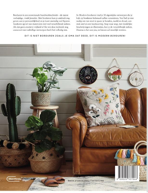 Borduren is een eeuwenoude handwerktechniek – de meest veelzijdige, vindt Jennifer. Met borduren kun je uitdrukking geven aan je persoonlijkheid en je kunt oneindig veel figuren borduren op tal van materialen met veel verschillende steken. Als dat geen creatieve vrijheid is! En wie deze techniek nog associeert met oubollige ontwerpen heeft het volledig mis. In Modern borduren vind je 30 eigentijdse ontwerpen die je kijk op borduren helemaal zullen veranderen. Veel heb je niet nodig om van start te gaan: je handen, naald en draad, een stuk stof en een borduurring. Stap voor stap, met duidelijke beschrijvingen en illustraties, leer je de verschillende steken. Daarna is het aan jou, en kiezen zal moeilijk worden.