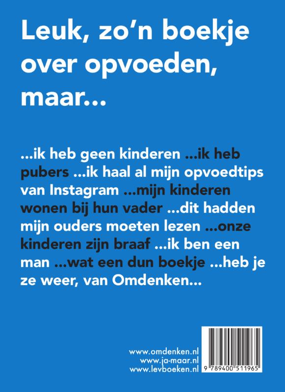 Omdenken in opvoeding is het zusje van de bestseller Omdenken (je weet wel, dat kleine rode boekje dat op honderdduizenden wc's in heel Nederland ligt). Dit prikkelende boekje vol grappige en ontregelende illustraties laat zien hoe je de techniek van het omdenken kunt inzetten in de opvoeding. Een boek voor iedereen die privé of in het werk met kinderen te maken krijgt. Leuk, zo’n boekje over opvoeden, maar… …ik heb geen kinderen …ik heb pubers …ik haal al mijn opvoedtips van Instagram …mijn kinderen wonen bij hun vader …dit hadden mijn ouders moeten lezen …onze kinderen zijn braaf …ik ben een man …wat een dun boekje …heb je ze weer, van Omdenken…