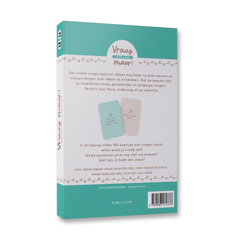 Veel ouders herkennen waarschijnlijk dat op de vraag ‘Hoe was je dag?’ vaak niet meer komt dan een simpel ‘goed’. Maar hoe laat je je kind nu meer vertellen over wat hem of haar bezighoudt? Het spel Vraag Maar! helpt om nieuwe dingen over elkaar te ontdekken en mooie plannen te maken voor de toekomst. Want het leven samen is zo veel meer dan van hot naar her rennen! In de drukte van alledag is qualitytime met je kind soms moeilijk te vinden. Terwijl je juist op de momenten dat je écht even tijd voor elkaar hebt, de gesprekken met ze voert waarin je ontdekt waar ze mee bezig zijn. Om je daarbij te helpen, hebben we het spel Vraag Maar! ontwikkeld. Hiermee krijg je op een leuke manier antwoord op vragen als: waar word jij heel blij van? En: welke dingen moeten we écht nog samen doen? Het spel brengt gegarandeerd een heel nieuw gesprek op gang waarin je interessante, hartverwarmende en grappige feiten over elkaar ontdekt.